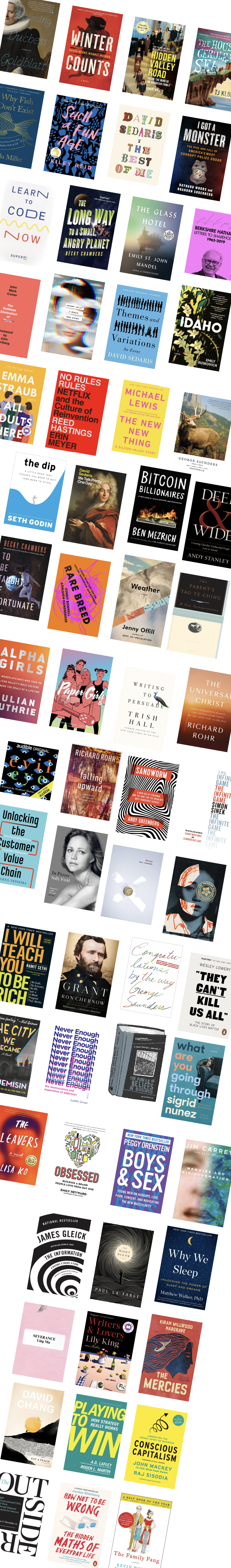 Each year, I aim to read one book per week (52 total). I track them all here, if youāre ever curious what Iām up to. In years past, Iāve gone a bit overboard and read more than 100 books a few times. This year, I hewed much closer to the goal ⦠and I reached it.