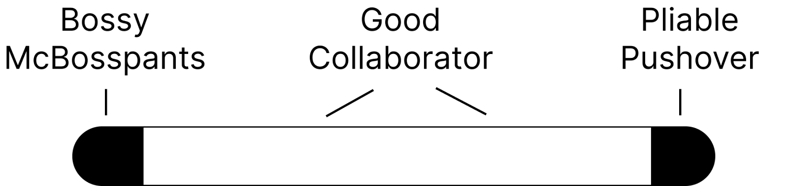 There is no single right way to collaborate, which means that “good” collaboration can look a number of different ways. The spectrum for good collaboration is wide. But as you move toward either end of the spectrum, you start to notice two pretty clear archetypes of harmful collaborators: one harshes the vibe of the room and the other treats themself rather harshly.
